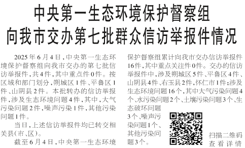 中央第一生态环境保护督察组向我市交办第七批群众信访举报件情况