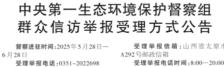 中央第一生态环境保护督察组群众信访举报受理方式公告
