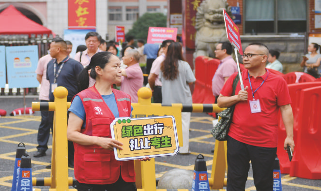 2025年全国高考期间,长沙市天心区组织青年志愿者,在多个考点为考生和家长提供便利服务。 新华社记者 陈振海 摄