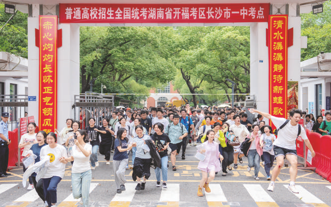 6月9日,在长沙市第一中学考点,考生在高考结束后庆祝。当日,全国部分地区高考结束。 新华社记者 陈思汗 摄