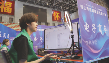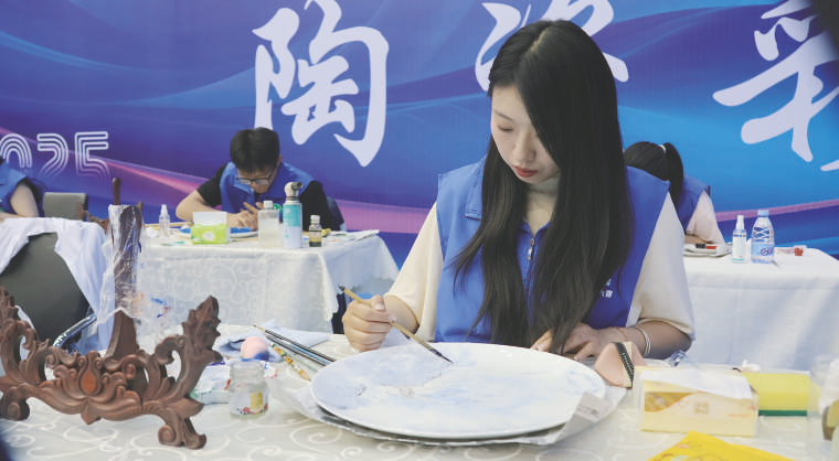 贴花女工康有利刚刚结束比赛,她对自己今天的表现很满意。她说:“我今天6分钟贴了10个大盘子,4分钟贴了10个小盘子,算是正常发挥。以前也参加过类似的比赛,今后希望多参加,不断提高自己的职业技能。”