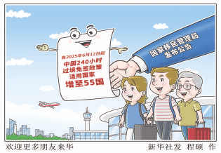 新华社北京电 (记者 任沁沁)国家移民管理局6月12日发布公告,自2025年6月12日起,印度尼西亚公民可适用240小时过境免签政策便捷来华,中国240小时过境免签政策适用国家增至55国。