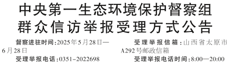 中央第一生态环境保护督察组群众信访举报受理方式公告