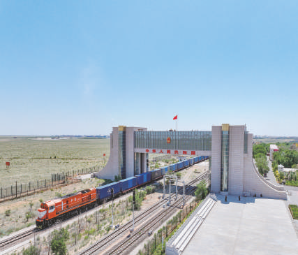 6月22日,一列中欧班列通过内蒙古二连浩特铁路口岸出境。