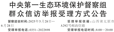中央第一生态环境保护督察组群众信访举报受理方式公告