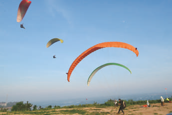 7月5日,游客在山东省荣成市爱伦湾海滨体验滑翔伞运动。随着暑假的到来,各地迎来暑期旅游旺季。