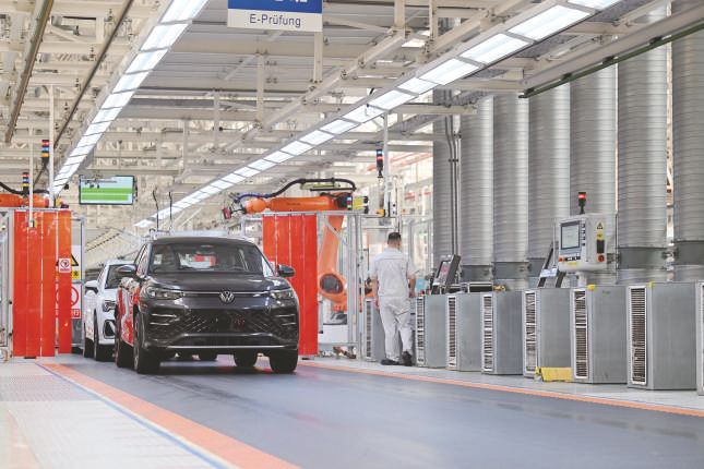 7月7日,在天津经济技术开发区一汽-大众华北基地总装车间,新车有序下线。