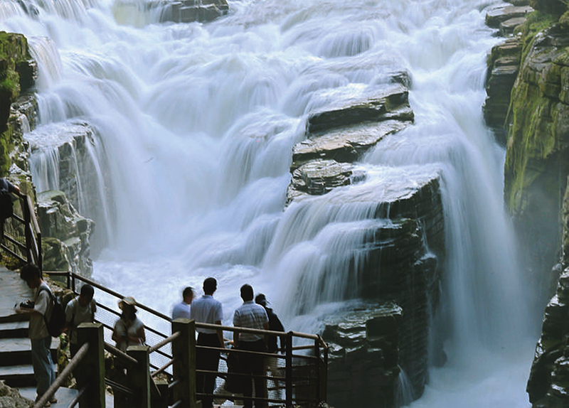 7月10日,游客在利川市腾龙洞景区游览“卧龙吞江”自然奇观。