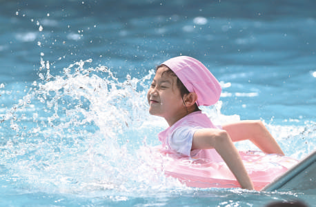 7月12日,小朋友在山东省枣庄市一家水上乐园戏水。连日来,全国多地持续高温,催热暑期“清凉经济”,多样化消暑体验和消费场景释放夏日经济活力。