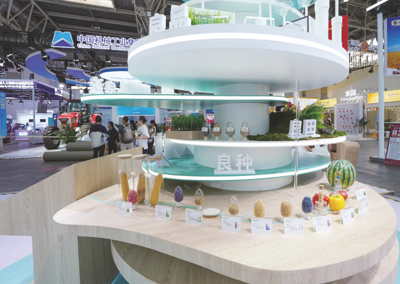 7月14日在第三届中国国际供应链促进博览会绿色农业链展区拍摄的先正达集团展位。