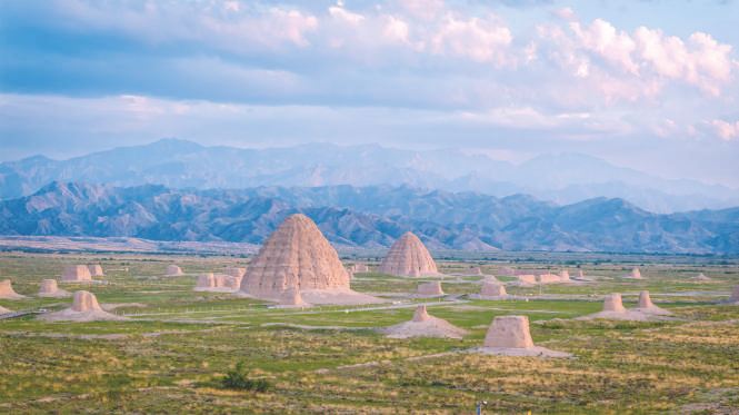 2025年7月10日在宁夏银川拍摄的西夏陵1号陵与2号陵(无人机照片)。