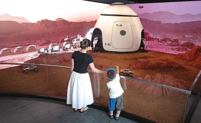 据了解,展览在遵循科学原理和现实依据的基础上,聚焦深空未来、火星建造、太空艺术三大主题,将未来火星生活的硬核科学畅想转换为真实可互动的场景,让观众仿佛置身未来火星基地,体验登陆、建设、开发及入住火星的全过程。