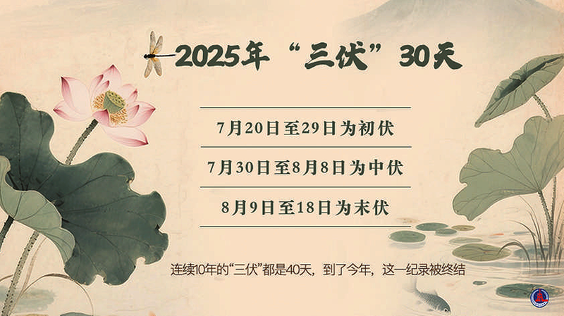 “蝉从初伏噪,客向晚凉吟。”7月20日,今年“三伏”的大幕正式开启,全国多地将进入持续高温模式,一般以“桑拿天”为代表。专家表示,2015年至2024年,连续10年的“三伏”都是40天,到了今年,这一纪录将被终结。今年“三伏”时长30天。 新华社发 刘琼 编制