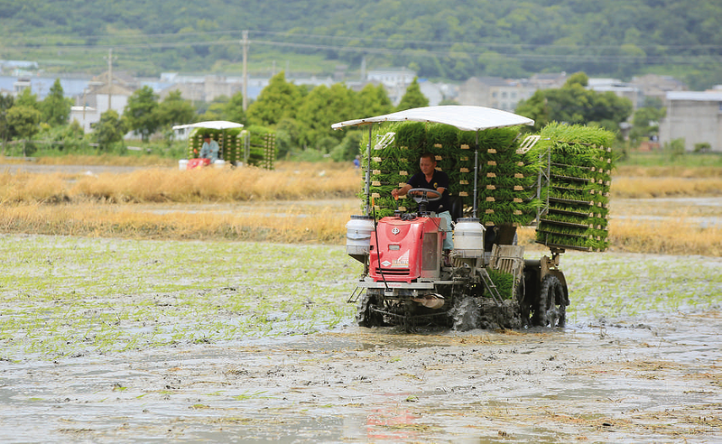 7月22日,浙江省温岭市城南镇东峰山村农民驾驶插秧机插种晚稻秧苗。当日是大暑节气,各地农民抢抓农时,忙碌在田间地头。 新华社发 周学军 摄