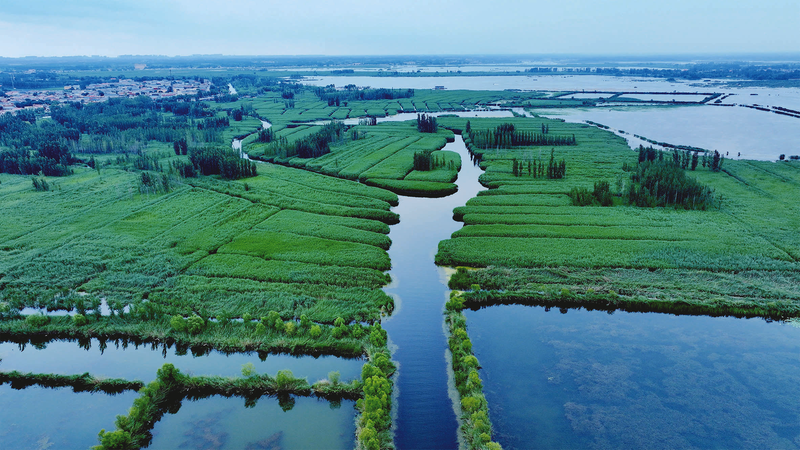 7月23日拍摄的雄安新区水上风景(无人机照片)。进入盛夏,雄安新区的风景愈发优美,令人赏心悦目。