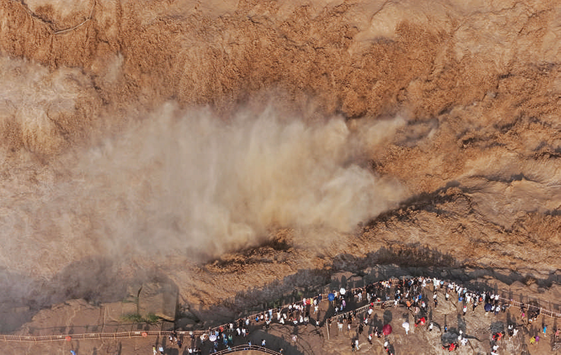7月 27日,人们在山西吉县观看黄河壶口瀑布。
