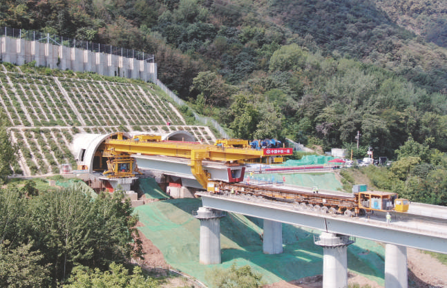 7月28日,施工人员在西康高铁跨关中环线立交特大桥架设全线最后一孔箱梁。当日,随着架桥机将一孔长32.6米、重431.75吨的箱梁平稳落在西康高铁跨关中环线立交特大桥墩台上,由西成客专陕西公司建设、中铁一局集团有限公司承建的西康高铁桥梁架设任务全部完成,为后续施工奠定坚实基础。
