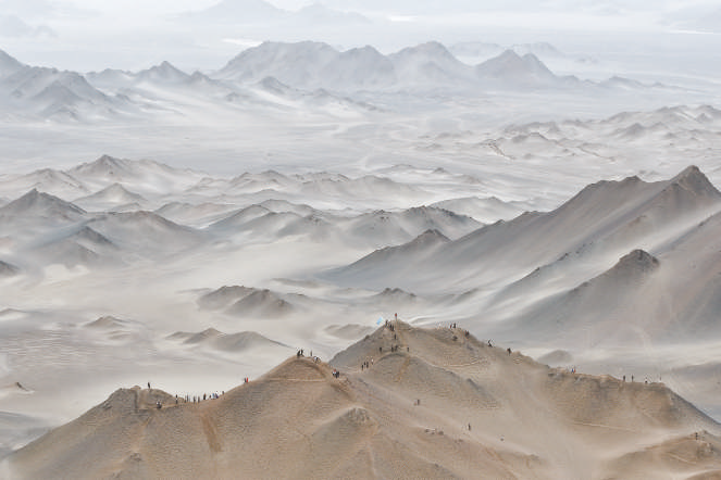 7月30日,游客在冷湖镇黑独山景区游玩(无人机照片)。位于青藏高原柴达木盆地西北边缘的青海省海西蒙古族藏族自治州茫崖市冷湖镇,曾是因石油而兴、又因油尽而沉寂的工业遗址小镇。八百里瀚海戈壁,冷湖镇似乎与世隔绝。然而,得天独厚的地理条件,让冷湖镇成为理想的观星地,近年来,当地发展科幻特色文旅,让戈壁小镇焕发新的生机。