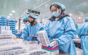 8月8日,工人在兰坪县高原特色现代农业产业园分拣、包装蓝莓鲜果。怒江州兰坪县位于云南省西北部,地处“三江并流”世界自然遗产腹地。近年来,当地依托资源与气候优势,成功发展出规模化种植的高原晚熟蓝莓产业,为乡村振兴注入“甜蜜动能”。