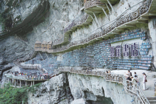 8月9日,游客在广西河池市罗城仫佬族自治县棉花天坑景区内的悬崖书店游玩。广西河池市罗城仫佬族自治县棉花天坑景区的悬崖书店于2025年5月开业,以其独特的建筑设计与阅读体验吸引众多游客和读者,累计接待游客10万人次。 新华社发 龙涛 摄