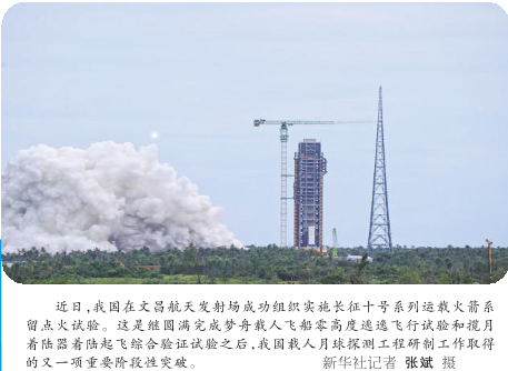 近日,我国在文昌航天发射场成功组织实施长征十号系列运载火箭系留点火试验。这是继圆满完成梦舟载人飞船零高度逃逸飞行试验和揽月着陆器着陆起飞综合验证试验之后,我国载人月球探测工程研制工作取得的又一项重要阶段性突破。