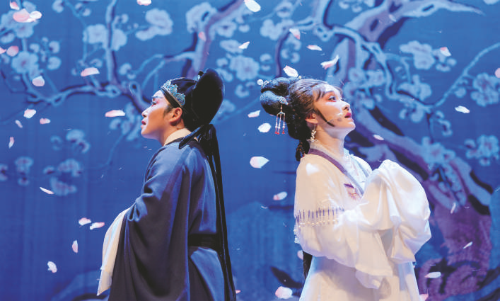 8月21日,在英国伦敦,浙江小百花越剧院的演员表演越剧折子戏《陆游与唐琬·题诗壁》。浙江小百花越剧院21日在英国伦敦为当地观众带来《爱情的花园》越剧折子戏专场,开启英国、德国巡演。剧院团队当日在伦敦萧剧院连演两场,吸引800余名观众到场观看。 新华社记者 吴鲁 摄
