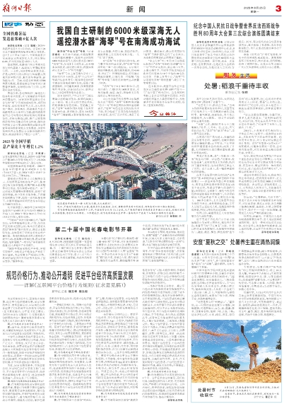 新华社北京8月24日电 记者从中国人民抗日战争暨世界反法西斯战争胜利80周年纪念活动新闻中心获悉,8月23日17时至8月24日5时,北京天安门地区举行了纪念中国人民抗日战争暨世界反法西斯战争胜利80周年大会第三次综合演练。据介绍,这是一次全流程、全要素预演,也是纪念大会最后一次综合演练,包括纪念大会仪式(含阅兵)、转场、观众组织及应急处置等各项内容,重点检验了各流程、各环节的衔接配合,为正式活动的成功举办打下坚实基础。