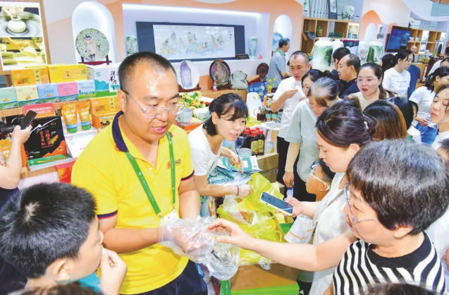 农文旅产品展示区人来人往,参观者络绎不绝。展架上,各类沙棘产品以及豆面、荞面、胡麻油、右玉羊肉等农产品琳琅满目。“我们不仅羊肉出名,由于海拔高、昼夜温差大、光照时间长,这种特殊的地理位置还造就了右玉高品质的沙棘、雪菊,以及豆面、荞面、莜面等农产品,欢迎大家来品尝。”山西献果园生物科技股份有限公司销售经理赵世永说。