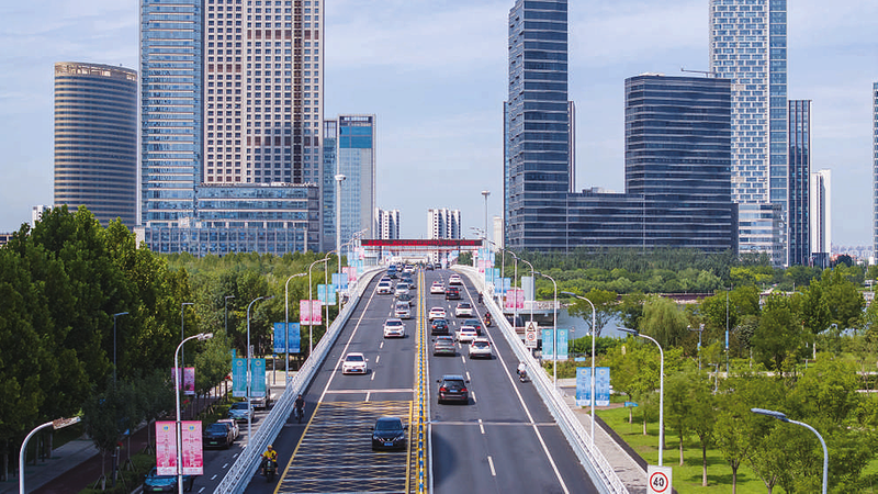在天津市滨海新区拍摄的城市街景(无人机照片,8月22日摄)。