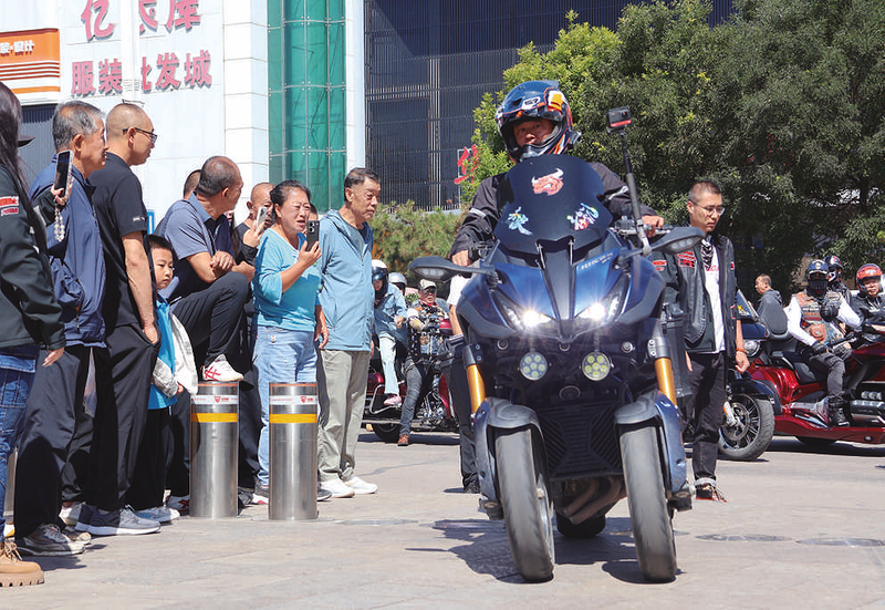 9月6日,来自全国各地的158名摩托车爱好者齐聚怀仁,在交警的护航下,举行了一场别开生面的摩托车巡游活动。当天上午,怀仁高速路口人头攒动,气氛热烈。摩托车爱好者身着专业骑行服装,精神抖擞地集结在一起。他们的座驾款式各异,吸引了广大市民驻足观赏、拍照留念。 赵万洋 熊质斌 摄