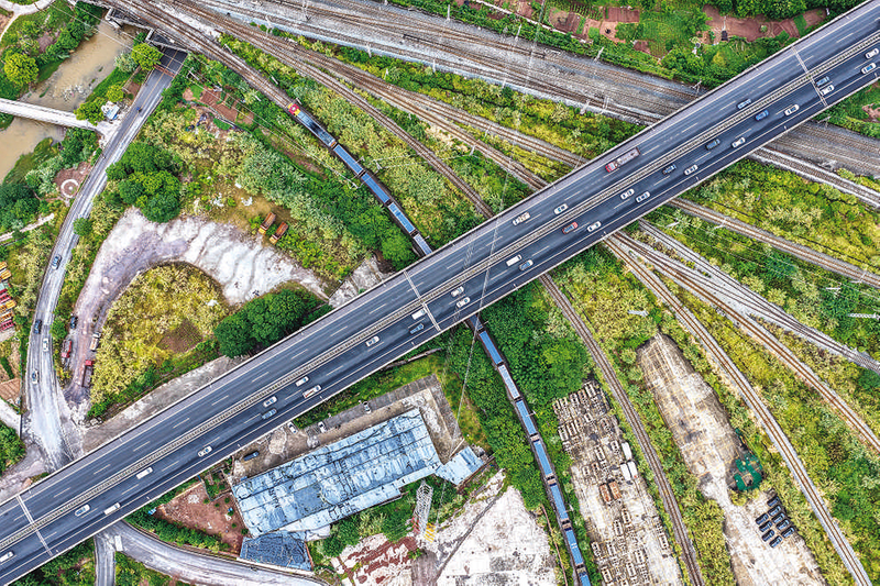 满载“重庆造”汽车的中欧班列(成渝)在重庆团结村中心站顺利发车(无人机照片)。9月8日,一列满载“重庆造”汽车的中欧班列(成渝)从重庆团结村中心站缓缓驶出。据重庆铁路物流中心统计,今年1月至7月,中欧班列(成渝)开行超3400列,运输进出口货物超28万标箱。 新华社记者 唐奕 摄