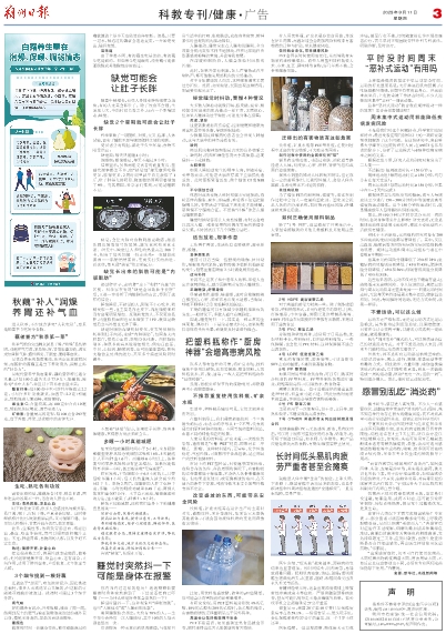 秋季气候的突出特点就是干燥,“秋燥”易伤肺阴,引起津气亏虚,累及肺、胃、肾等脏器功能,诱发或加重肺气肿、慢性咽炎、干眼症、便秘等症状。