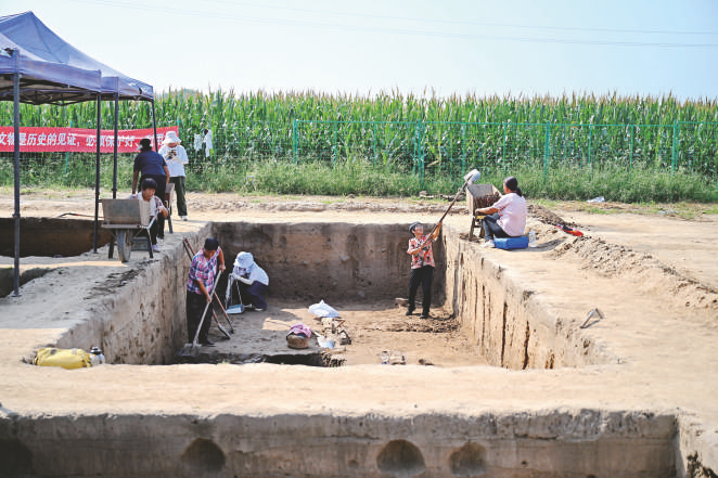9月10日,工人在柏人城遗址第六次考古发掘现场清理泥土。经国家文物局批准,位于河北省邢台市隆尧县的柏人城遗址于今年7月正式启动第六次考古发掘工作,目前正按照时间节点有序推进田野发掘作业。该遗址曾于2016年至2024年进行过5次发掘,今年考古发掘共有三处发掘点,总发掘面积约600平方米。柏人城遗址是我国保存较好的古代中大型城池之一,2013年被国务院公布为第七批全国重点文物保护单位。 新华社记者 牟宇 摄