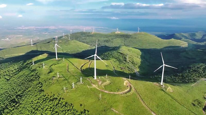 从高空俯瞰,初秋的黑驼山,是一幅铺展在天地间的生态长卷。深浅交织的绿意漫过连绵山峦,风力发电机在山体间有序排布,微风袭来,叶片缓慢转动,与悠悠游弋的白云相映成趣。此时,每一丝风、每一抹绿、每一朵云,都在齐心协力书写着黑驼山独有的悠然与生机。