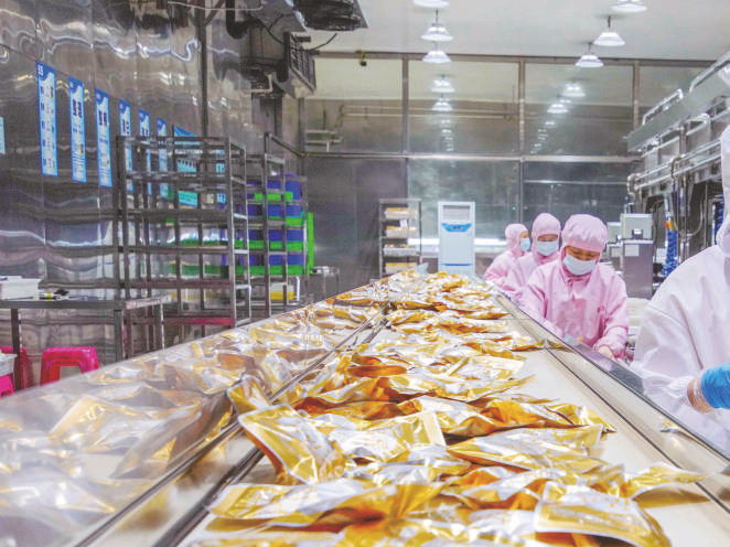 9月15日,工人在河北省遵化市苏家洼镇一家板栗加工企业包装车间工作。国家统计局15日发布的数据显示,8月份,全国规模以上工业增加值同比增长5.2%,环比增长0.37%;全国服务业生产指数同比增长5.6%。 新华社发 刘满仓 摄