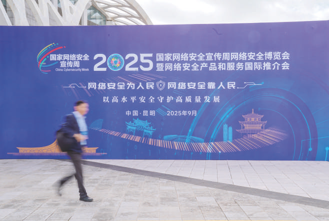 参加2025年国家网络安全宣传周开幕式的嘉宾从宣传展板前走过。 新华社记者 彭奕凯 摄