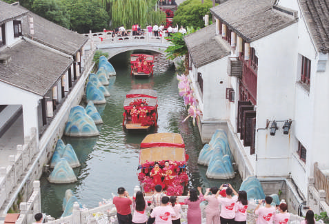 9月29日,中铁二十局在江苏苏州甪直古镇举办“姑苏缔良缘 携手向未来”青年职工集体婚礼。26对新人身着传统婚服,共读婚书,喜结连理。