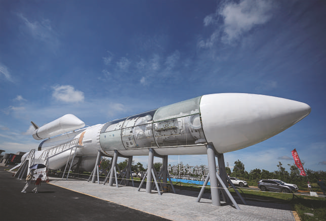 10月7日在文昌航天科普中心拍摄的长征五号B运载火箭模型。