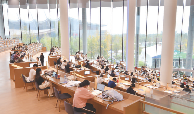 市民在北京城市图书馆内读书、学习。国庆假期,市民来到北京城市图书馆读书学习,在书香和静谧中度过假期。 新华社记者 李欣 摄