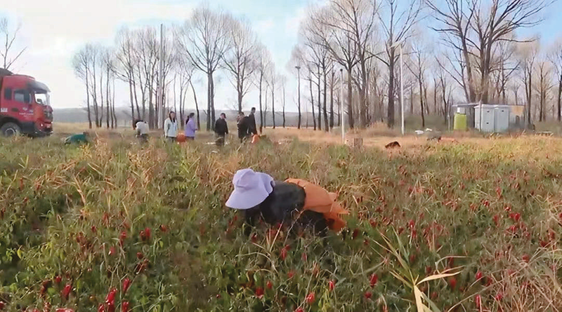 时下,正值辣椒采摘的关键时节,在威远镇后锁堡村鲜椒种植基地,右玉县农业农村和水利局的技术人员仔细查看辣椒成熟情况,现场为农民讲解抢收的最佳时机和方法。针对一些地势较低和有积水的农田,技术人员因地制宜,协助农民制定解决方案,为抢收创造有利条件。