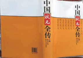 《中国状元全传》(主编车吉心、副主编刘德增),山东美术出版社出版,1993年7月一版一印,16开精装本、65.75印张、1500千字、印数1万册、定价66元。2008年2月山东美术出版社再次以“一版一印”的形式出版了此书,除去没有标明印数外,其余均与1993年的一版一印完全相同。本书共收录状元382人,其中文状元366人,武状元13人,附录大西国武状元1人,太平天国女状元、武状元各1人;在每个朝代的状元传之后,又附以状元表。如唐德宗九年(793)癸酉科状元苑论就是以“表”的形式出现的,只载“朝代名、科名、状元姓名、籍贯”四项内容。这倒也不是编著厚此薄彼,而是因史料所限,有些状元已经无法立传了。