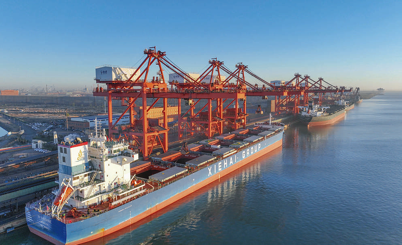 冬季即将来临,河北省唐山港京唐港区煤炭堆场、码头一片忙碌景象,工人们加紧进行电煤转运、装船等工作,全力保障电煤供应。 新华社发 刘满仓 摄