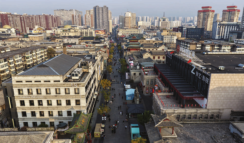 钟楼街一景(无人机照片,10月29日摄)。每当夜幕降临、华灯初上,位于山西省太原市迎泽区的钟楼街总是人潮涌动,热闹非凡。作为太原市的商业街区和文化地标,有着千年文化底蕴的钟楼街承载着厚重城市记忆。然而,随着城市快速发展,设施陈旧、空间狭窄和交通堵塞等问题,一度使得钟楼街风光不再。