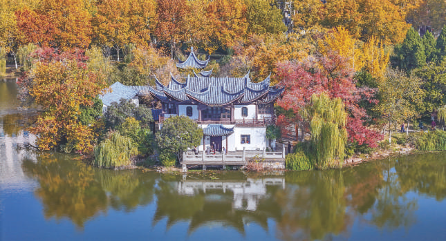 11月10日拍摄的江苏徐州云龙公园(无人机照片)。邂逅薄霜与暖阳装点的初冬,在斑斓的色彩中感受季节交替的浪漫。 新华社发 白雪 摄