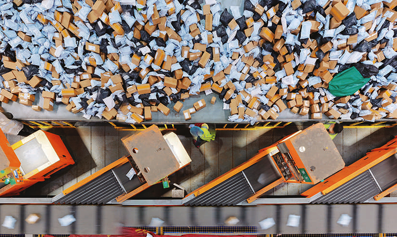 11月10日,在中国邮政集团有限公司江苏扬州邮件处理中心,工作人员在分拣快递包裹。