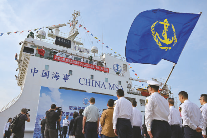 11月13日在海口拍摄的“海巡176”轮列编仪式现场。