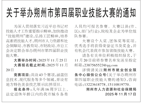关于举办朔州市第四届职业技能大赛的通知