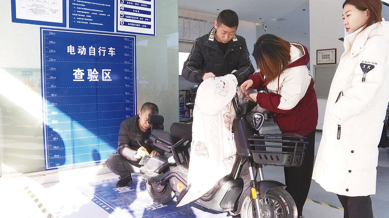 电动自行车挂牌事关群众的生命安全和城市交通秩序管理。近日,我市公安交管部门全面启动电动自行车“带牌销售”工作。市民“购车即上牌”,商家“服务促销量”,大家纷纷对这一便民举措表示赞赏。 孙权 符烨邦 摄