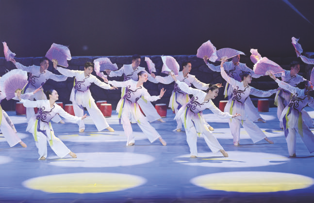 11月20日,由安徽省花鼓灯歌舞剧院创作的音舞诗画《家住淮河边》在安徽蚌埠大剧院首演。 新华社记者 黄博涵 摄