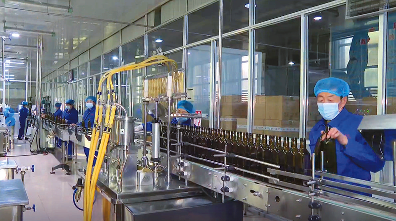 在山西中大生物科技有限责任公司的亚麻籽油罐装生产车间,经过低温冷榨的亚麻籽油,在自动流水线上进行最后的检测、密封与贴标,这条生产线的日产能力可达五千瓶。该公司生产部长王志鑫介绍:“这几天咱们加工的亚麻籽,全是刚从地里收回来的新货,今年雨水足,原料品质特别好,颗粒饱满又均匀。我们用的是低温冷榨工艺,就是为了把亚麻籽里的天然营养都锁得牢牢的。依托右玉得天独厚的生态环境和优质小杂粮资源,公司现在一年能处理5000吨原料,产品有瓶装、桶装各种规格,销往全国各地,线上线下都能买到。”